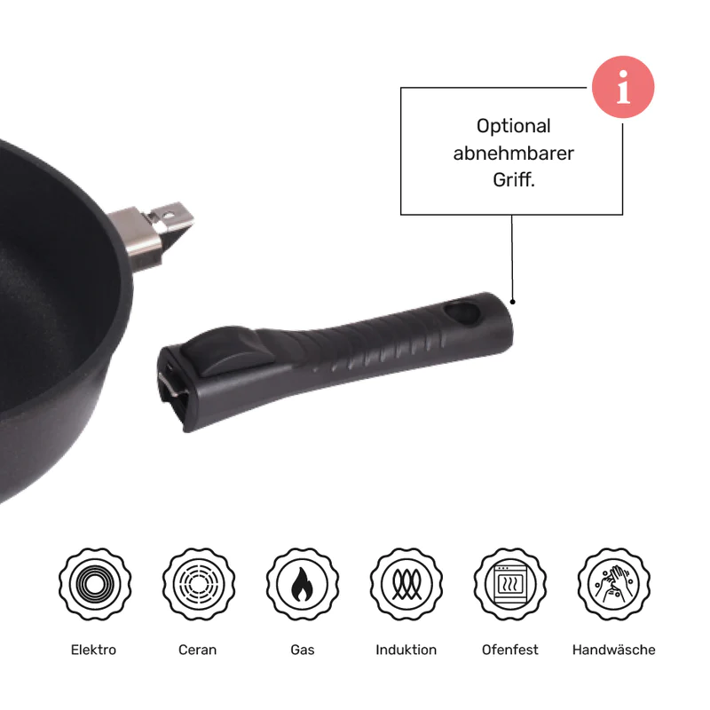 Úvod »Pánve»Pánve s odnímatelnou ručkou » Titanová pánev 28 cm na palačinky a steaky BAF Gigant odnímatelná ručka